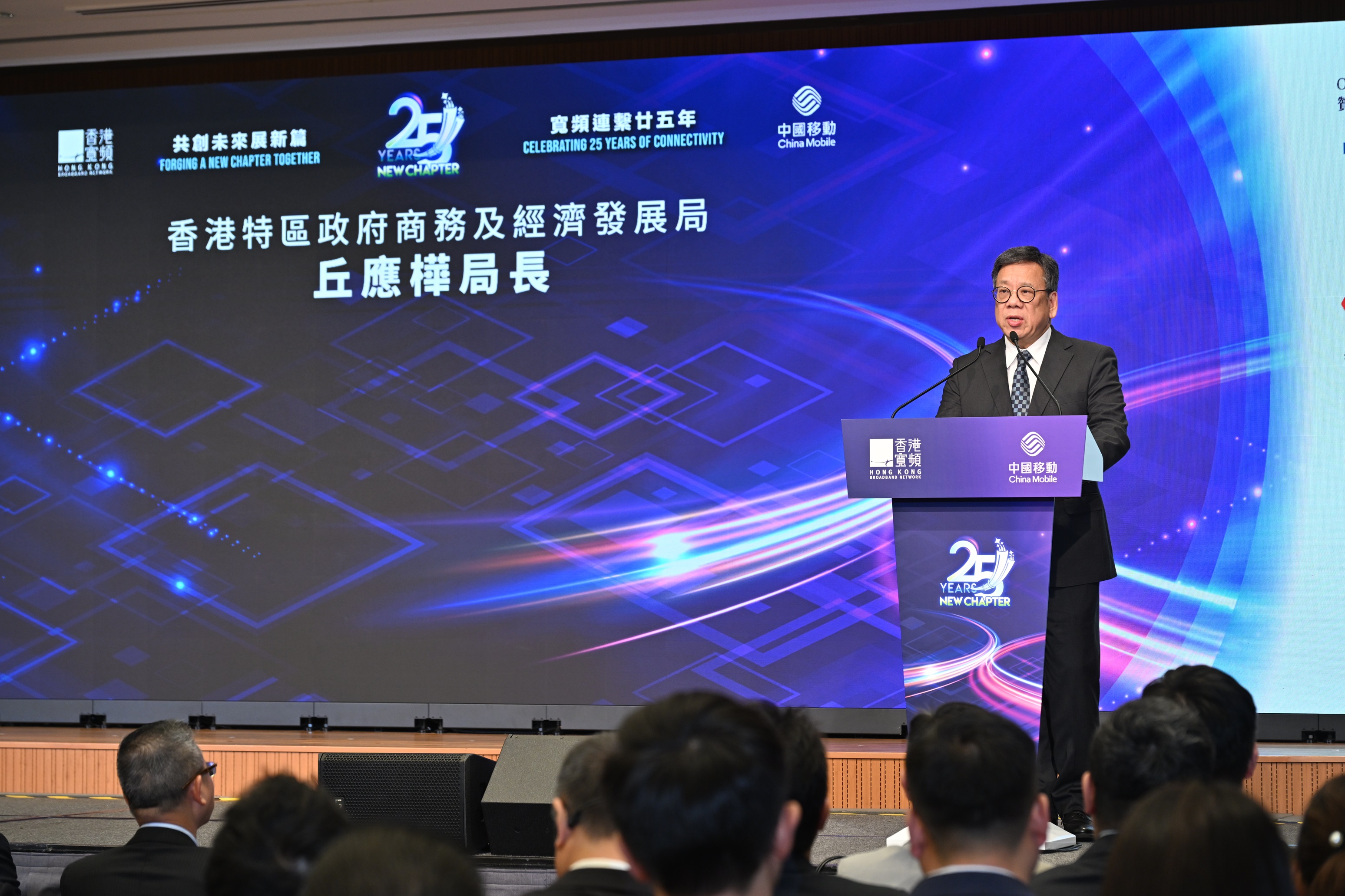 Photo caption: Mr Algernon Yau, Secretary for Commerce and Economic Development, gives the opening address at HKBN’s 25th Anniversary Celebration.