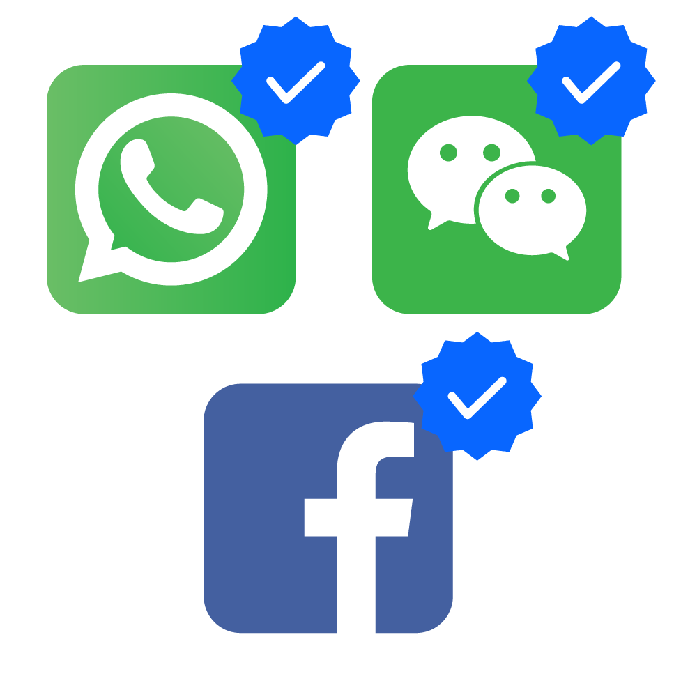 香港寬頻的 WhatsApp、WeChat 及 Facebook 帳戶均附有官方認證的藍剔標記。